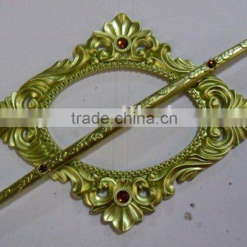 Costume jewelry; brooches; buttons; buckles; rhinestone mesh; beaded fringe; eyelet trimming; appliqués; belts; corsage and novelty items