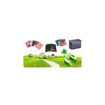 Plastic card; shopping bag; photo album; tag; laminated plastic card; paper bag; tote bag; post card; greeting card