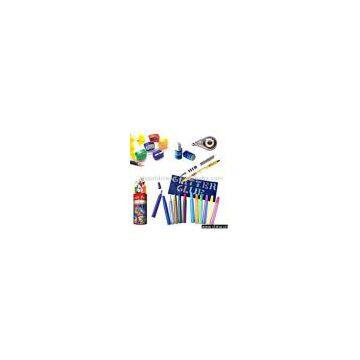 Pen; pencil; glue; paint; colour pad; atrs brush; stamp-set; sticker; white board; eraser; clip; pin